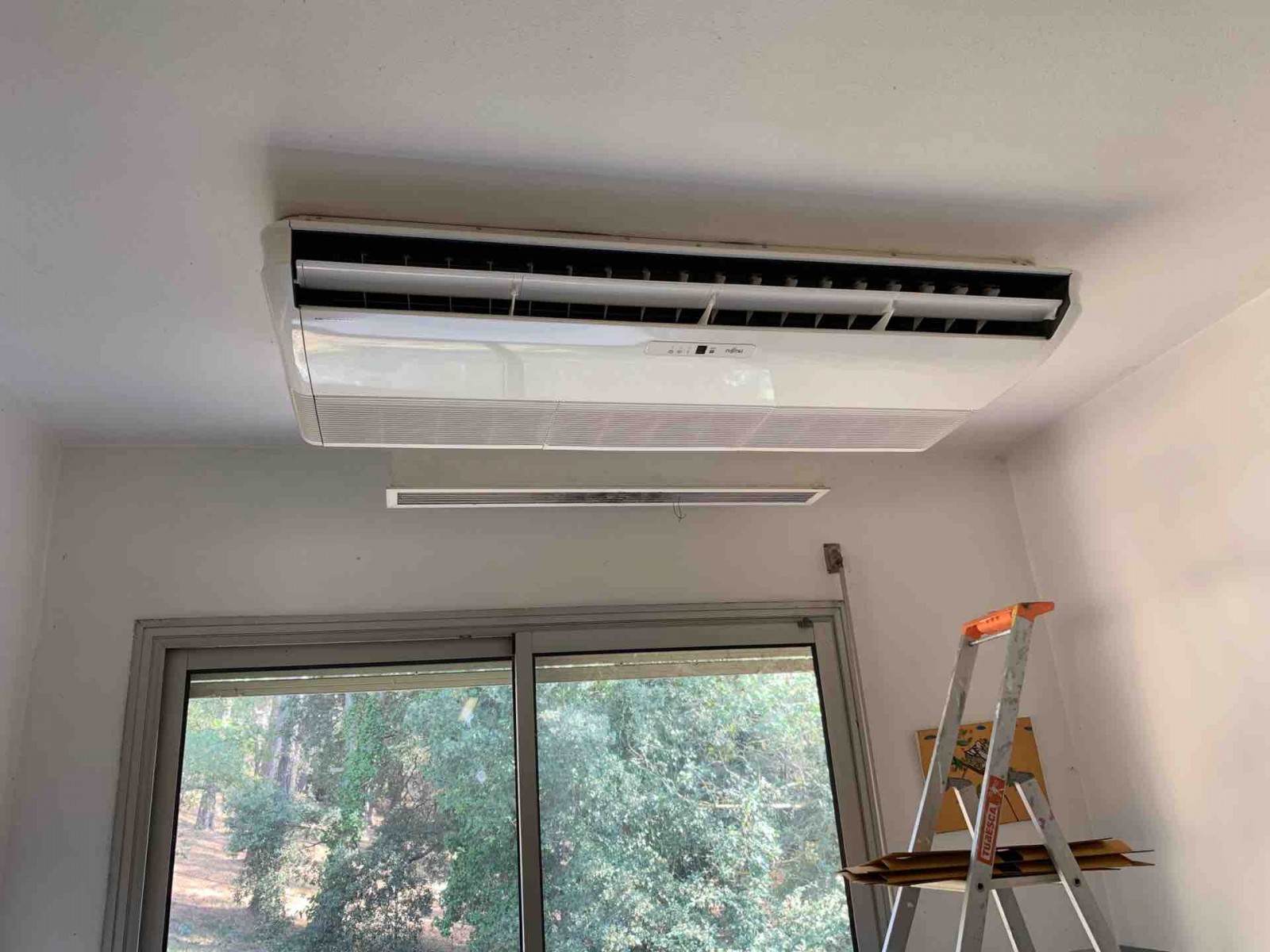 ce plafonnier de 10kW assure le chauffage et la climatisation d’un réfectoire de 120m2