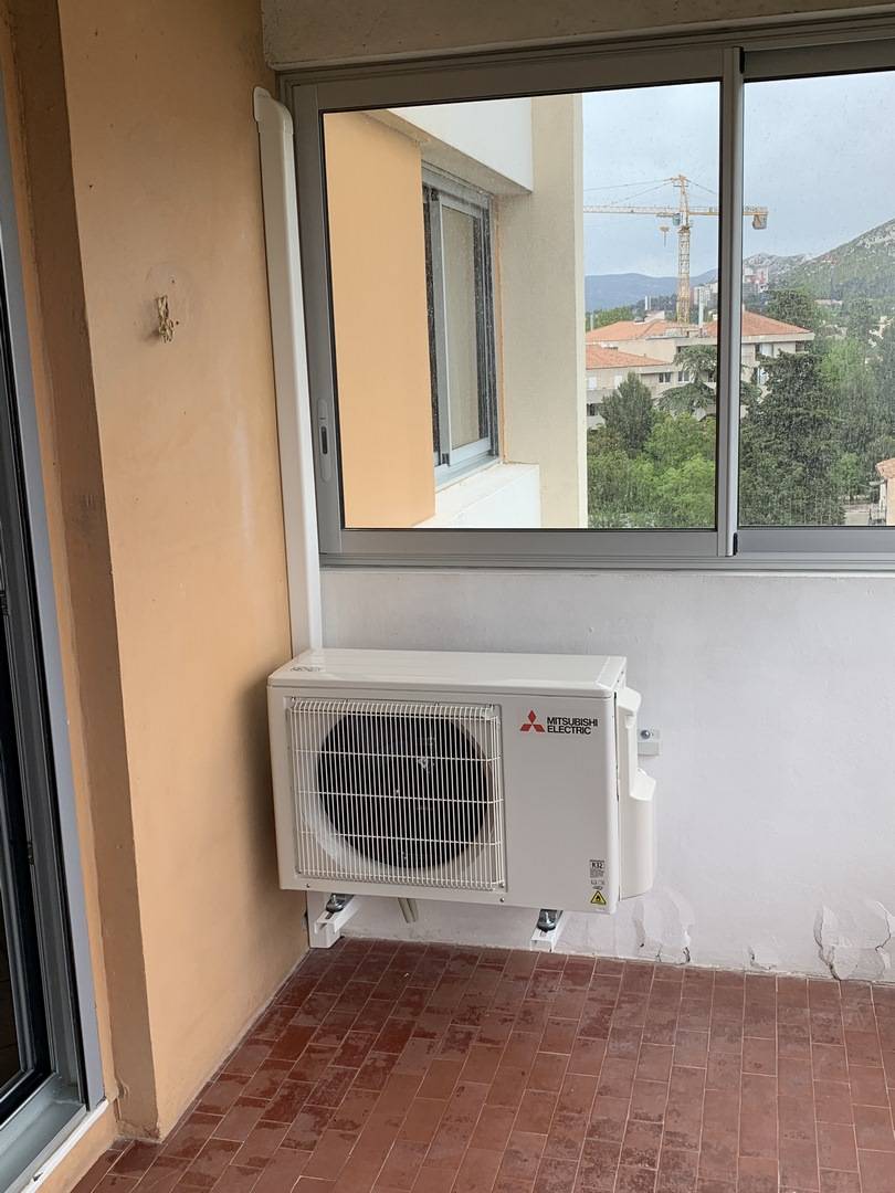 SOLELEC PROVENCE a réalisé l'étude, la pose, et la mise enservice d'un ensemble de climatisation comprenant un groupe extérieur MITSUBISHI bi split de 5 kW froid et deux unités murales de type compact AP, modèle AP15 et AP42.